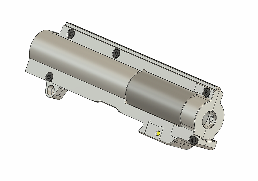 各社メタルレシーバーのように、アッパーレシーバーを前方からスライドして装着するタイプのレシーバーにのみ対応となります。